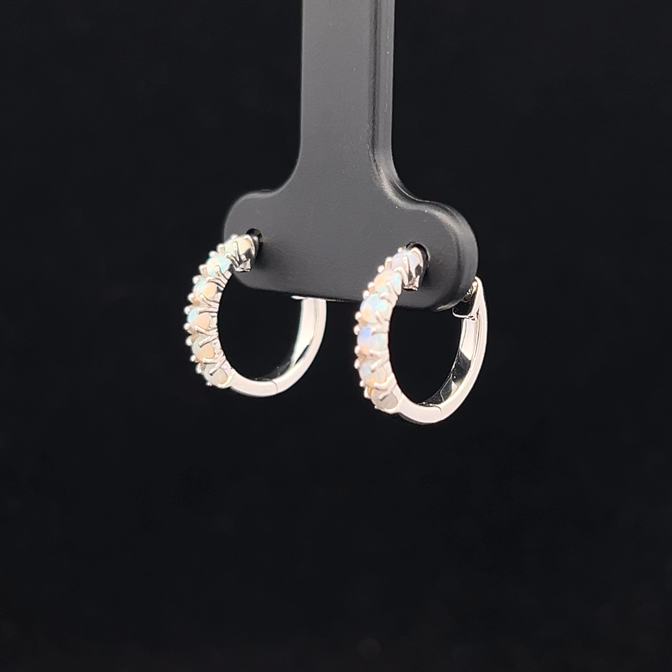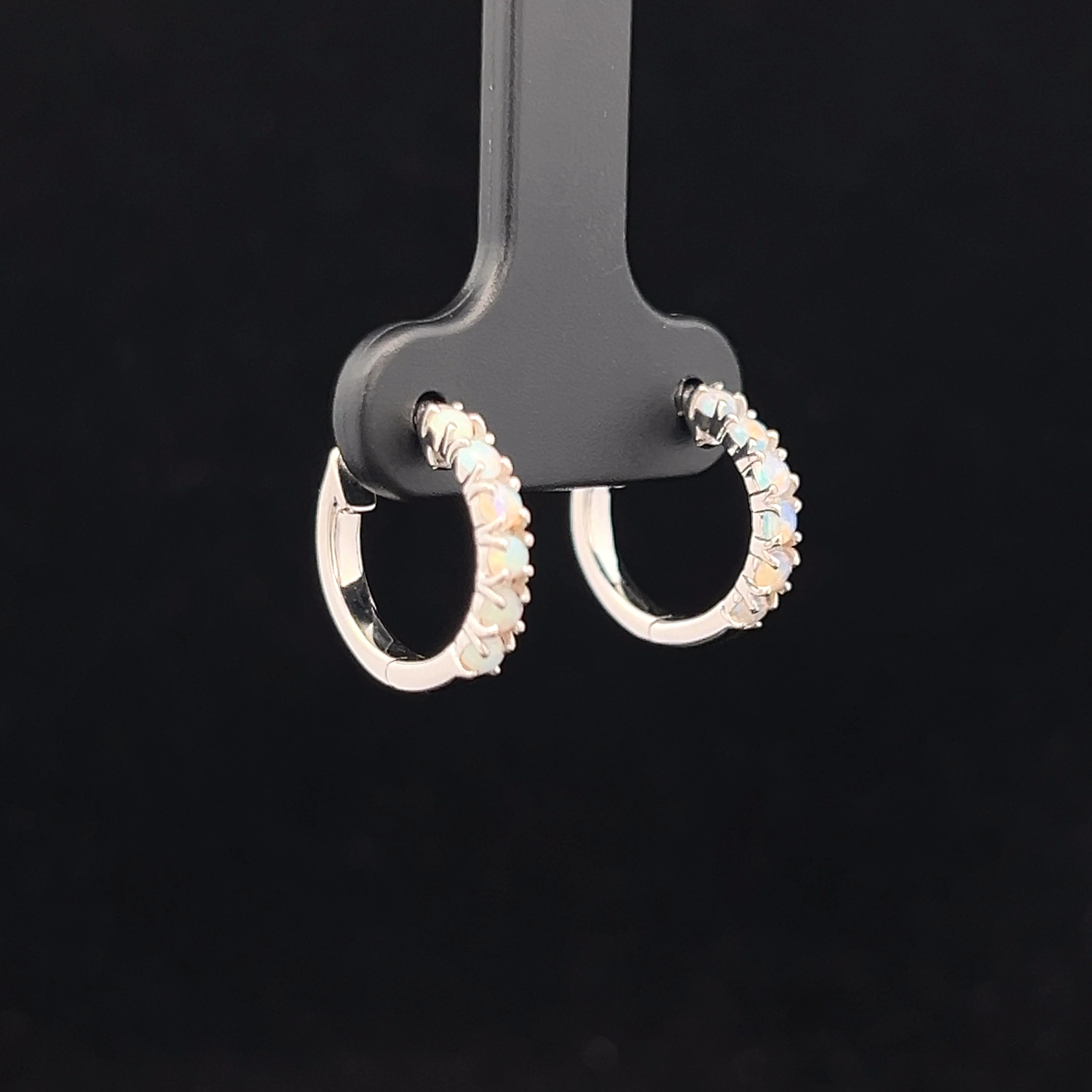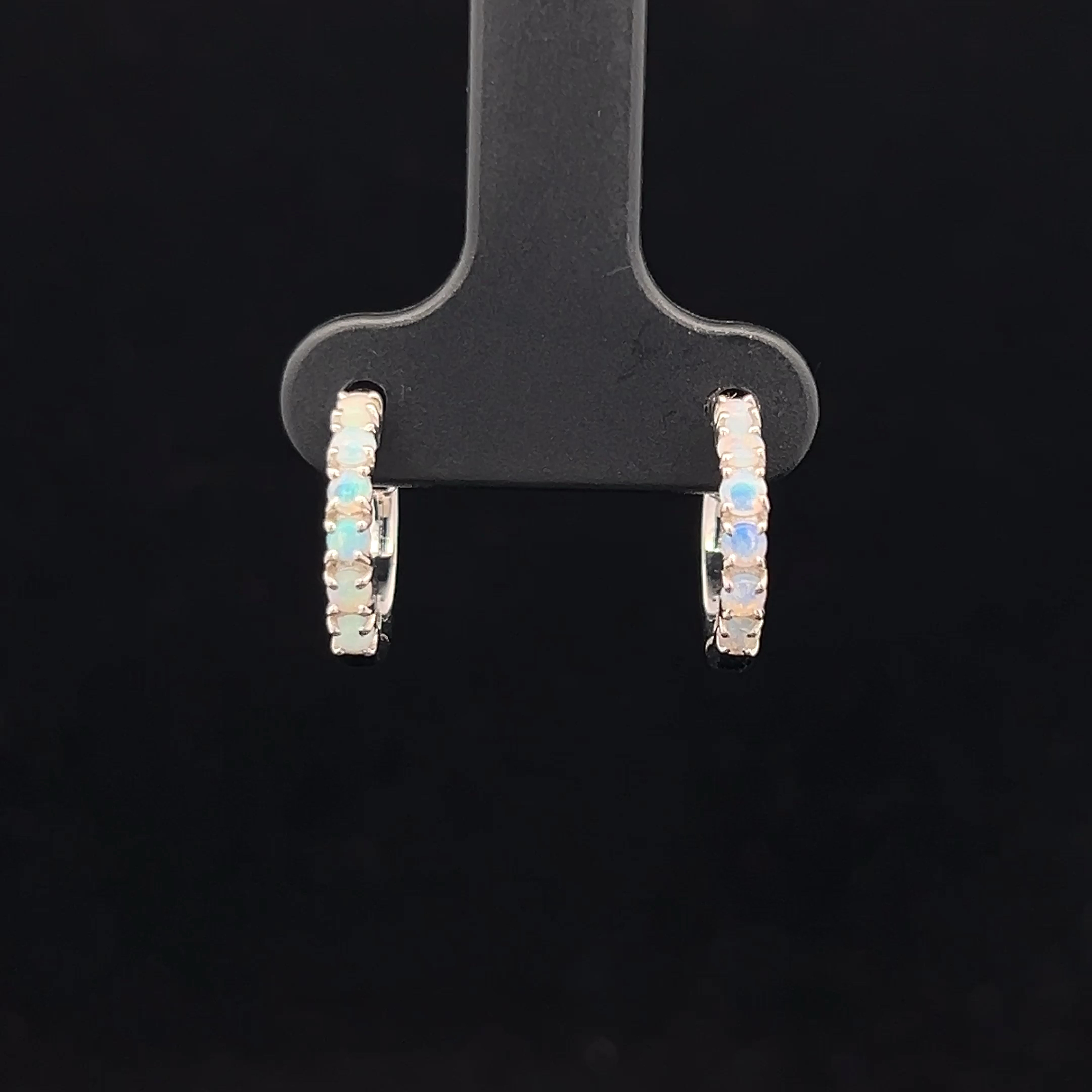 Six South Australian Solid Light Opal Set in Sterling Silver Hoop Earrings