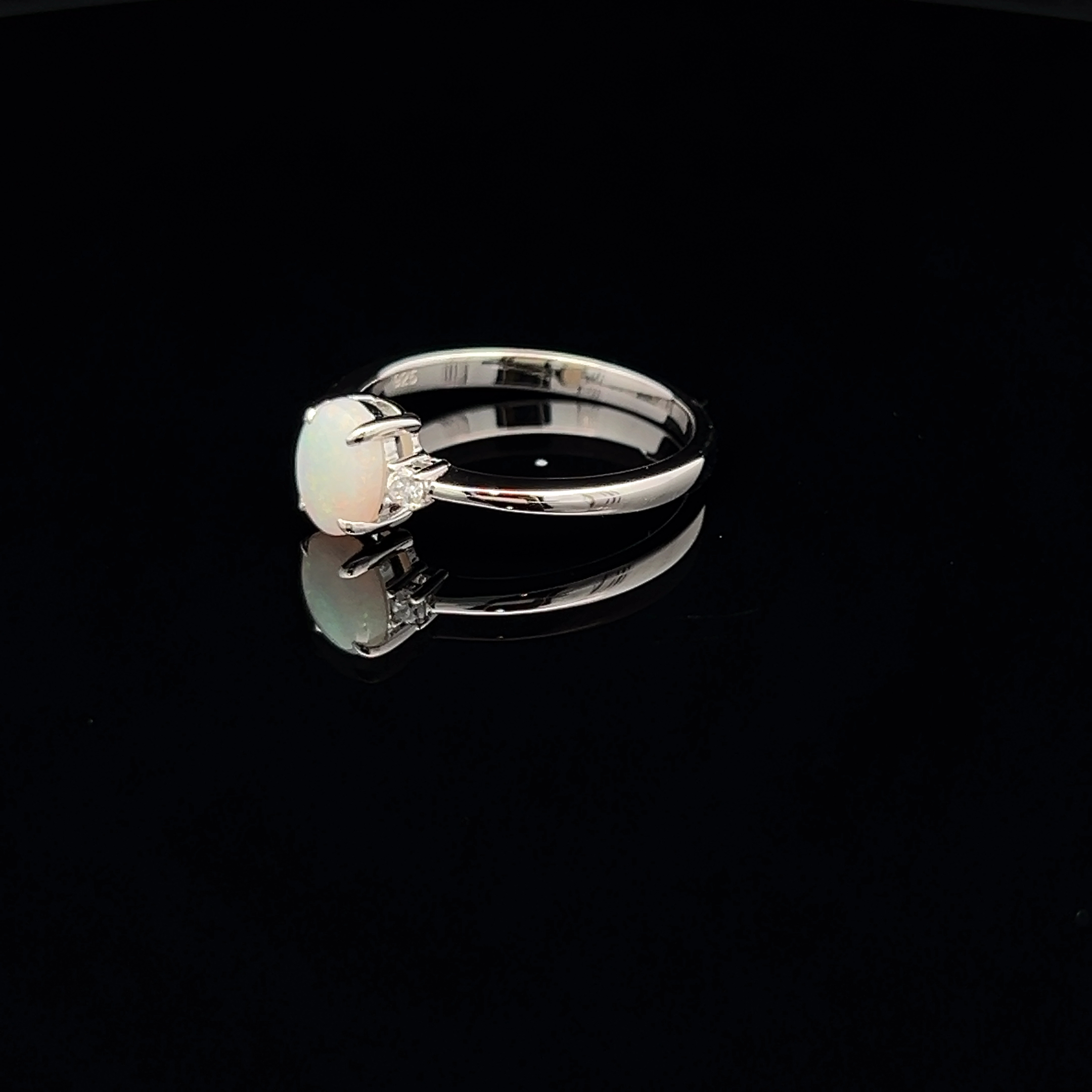 Sterling Silver Solid Light Opal and Cubic Zirconia Ring 128540