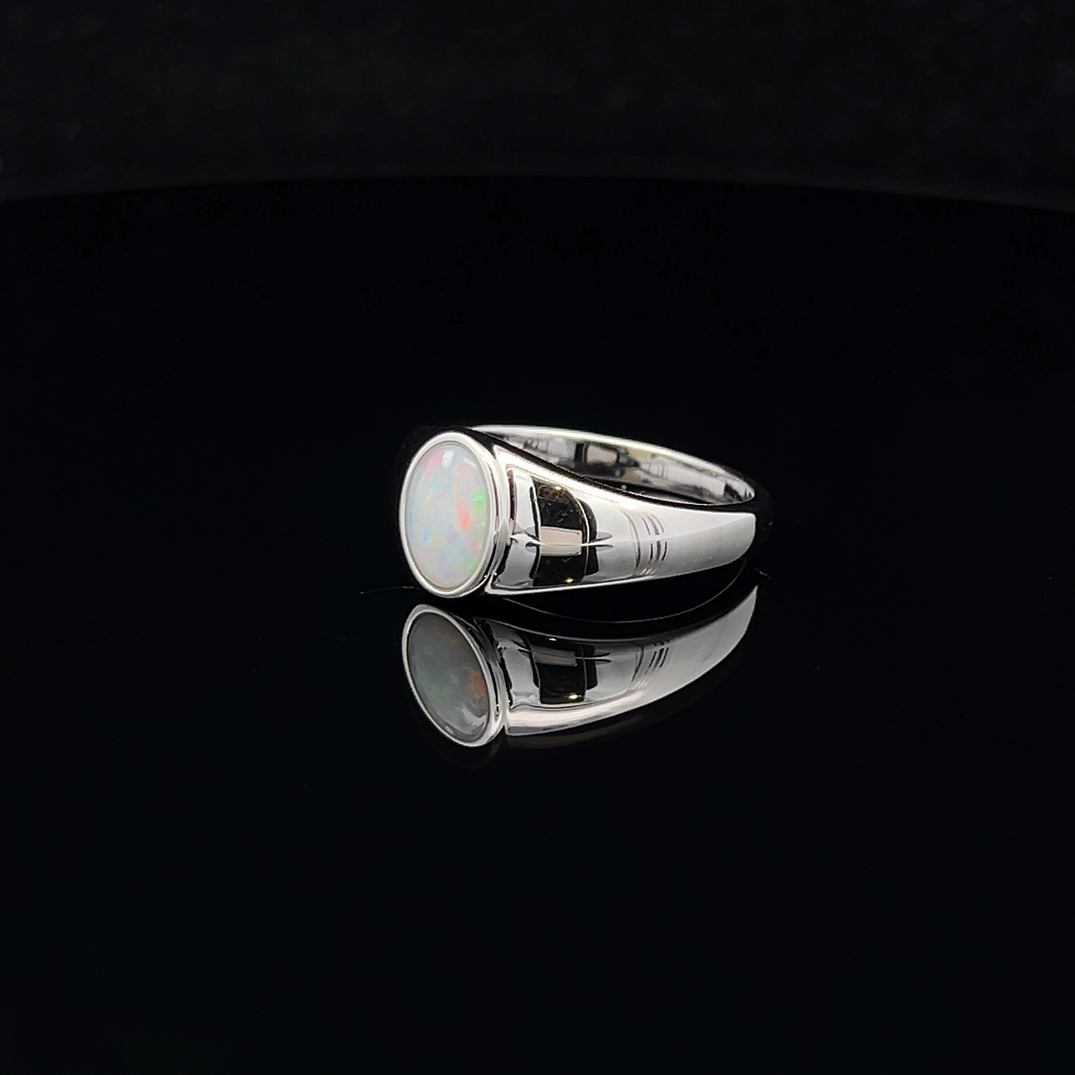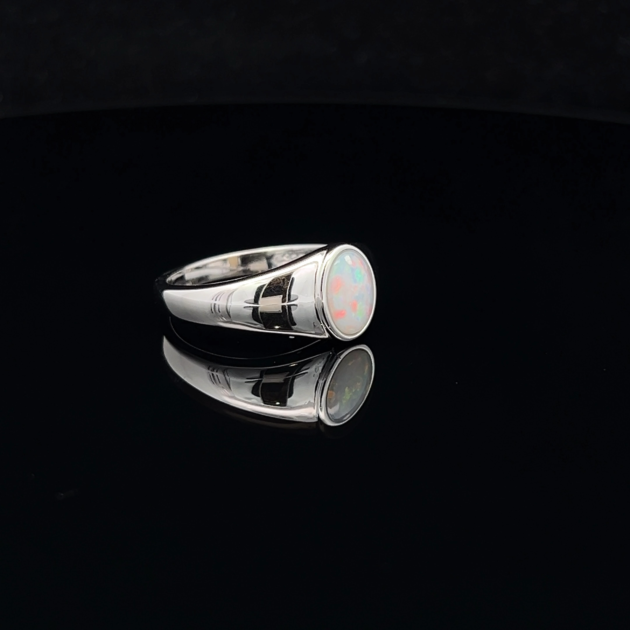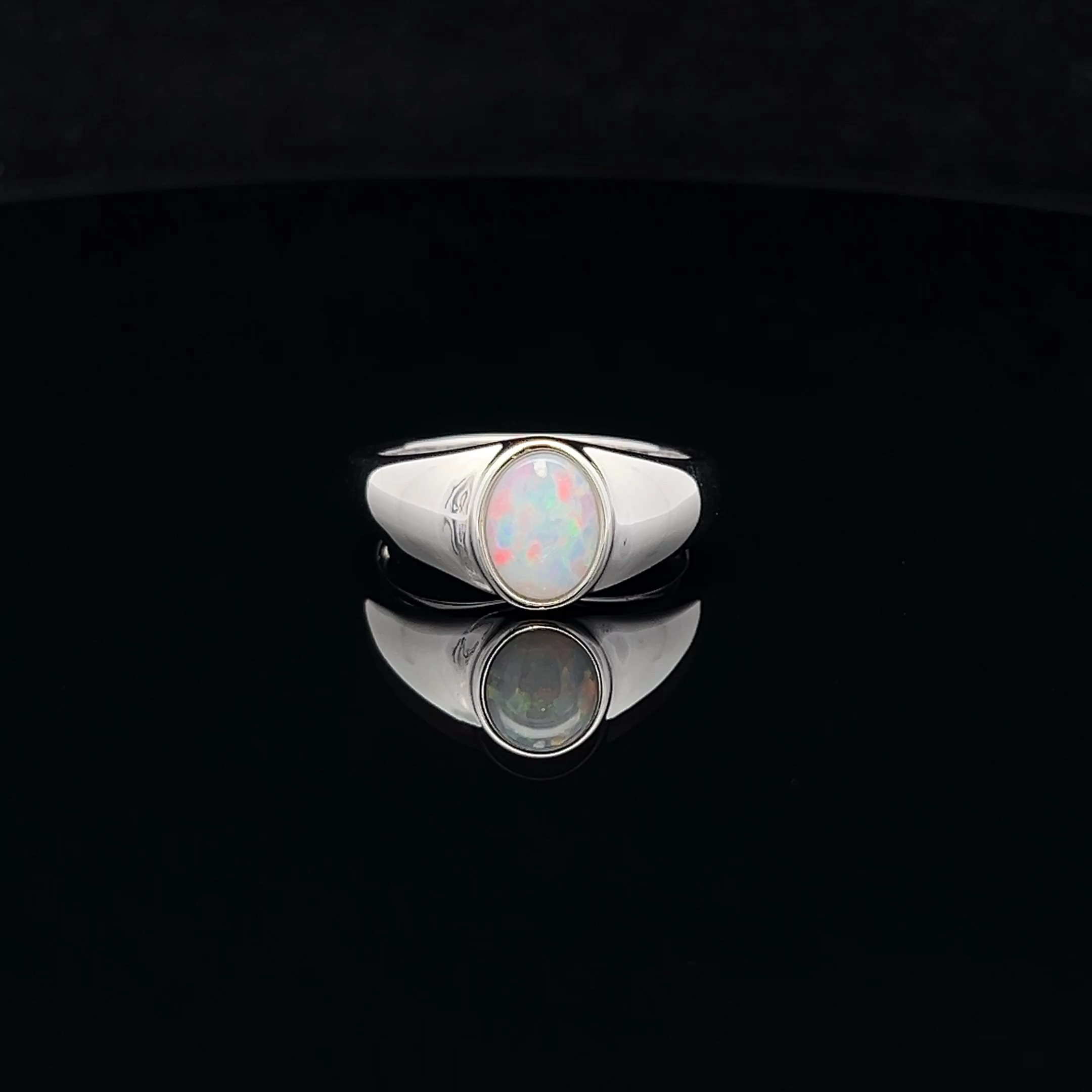 Solid South Australian Light Opal Ring Set in Sterling Silver