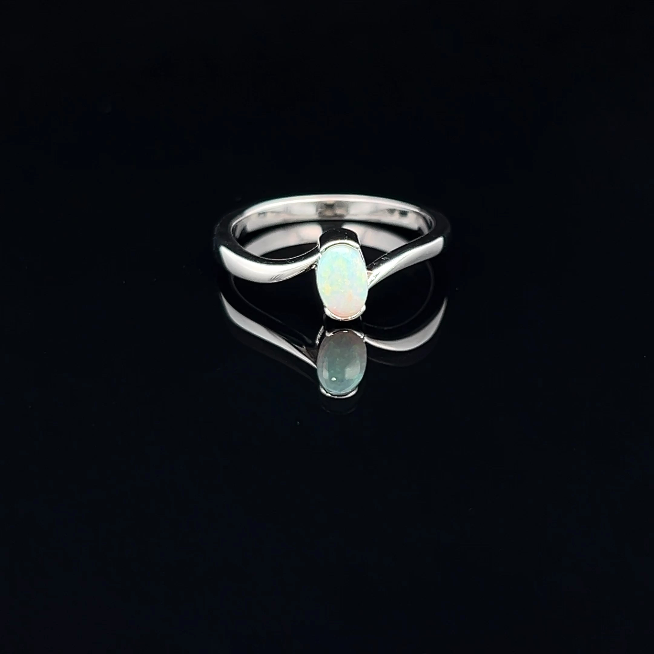 Solid South Australian Crystal Opal Ring Set in Sterling Silver