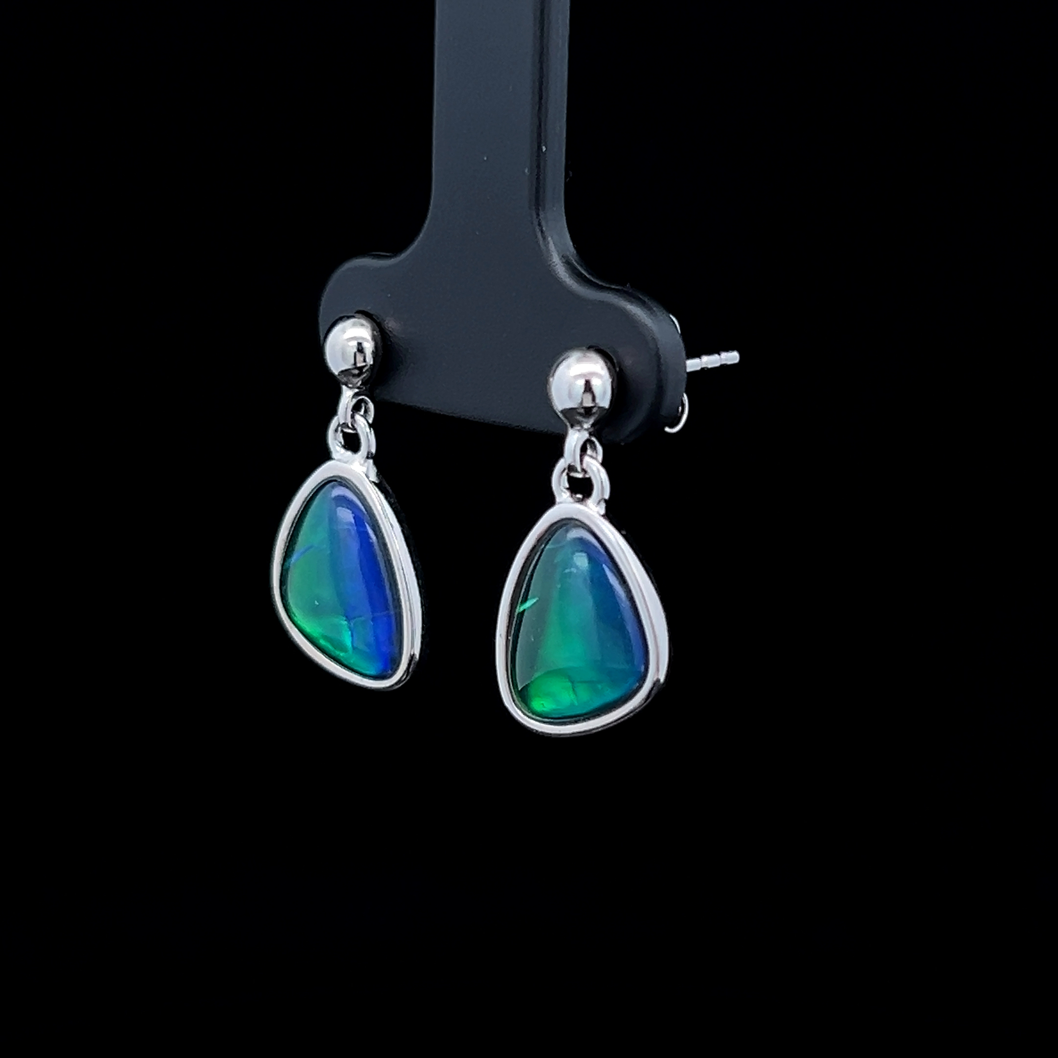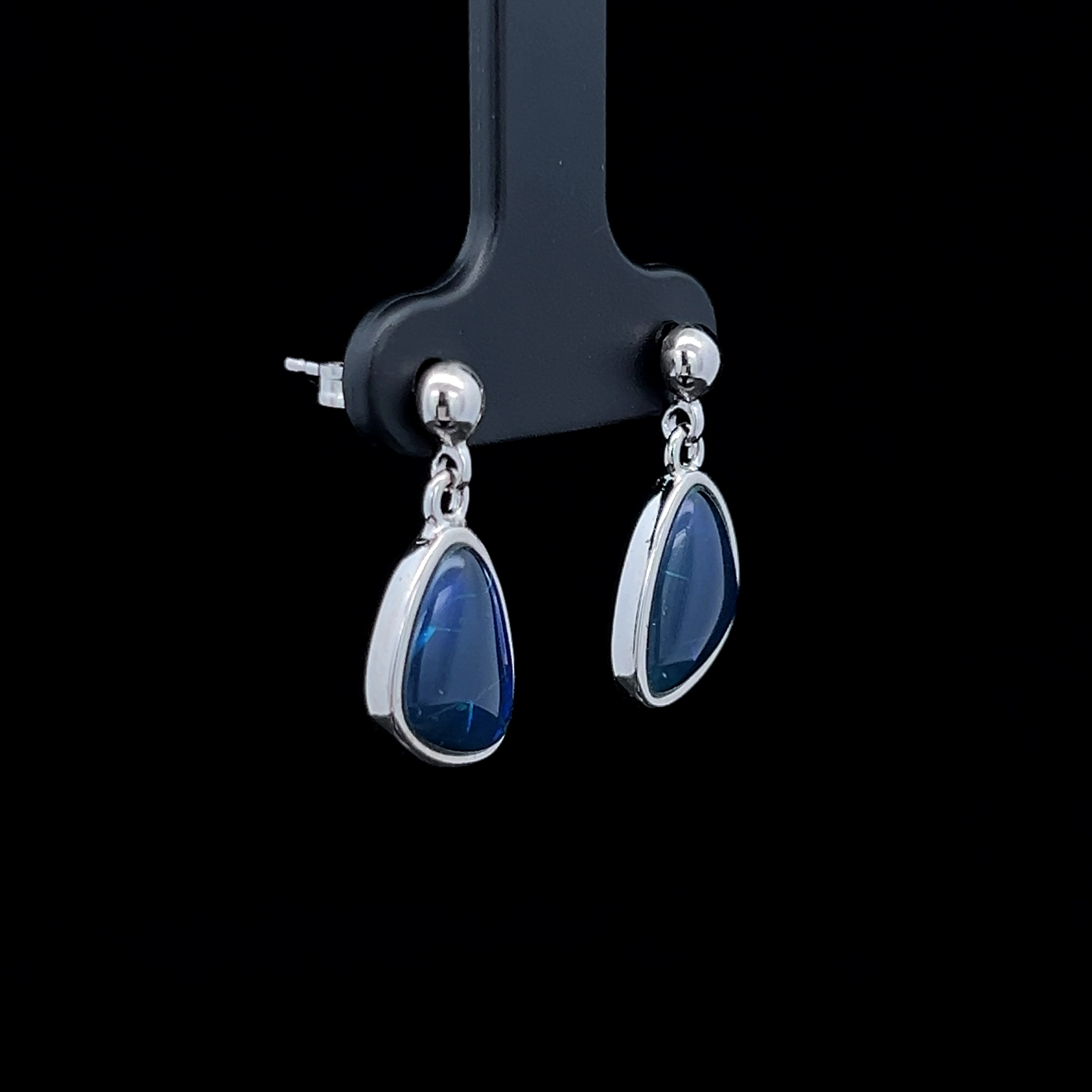 Gem Quality Australian Triplet Opal set in Sterling Silver Drop Earrings