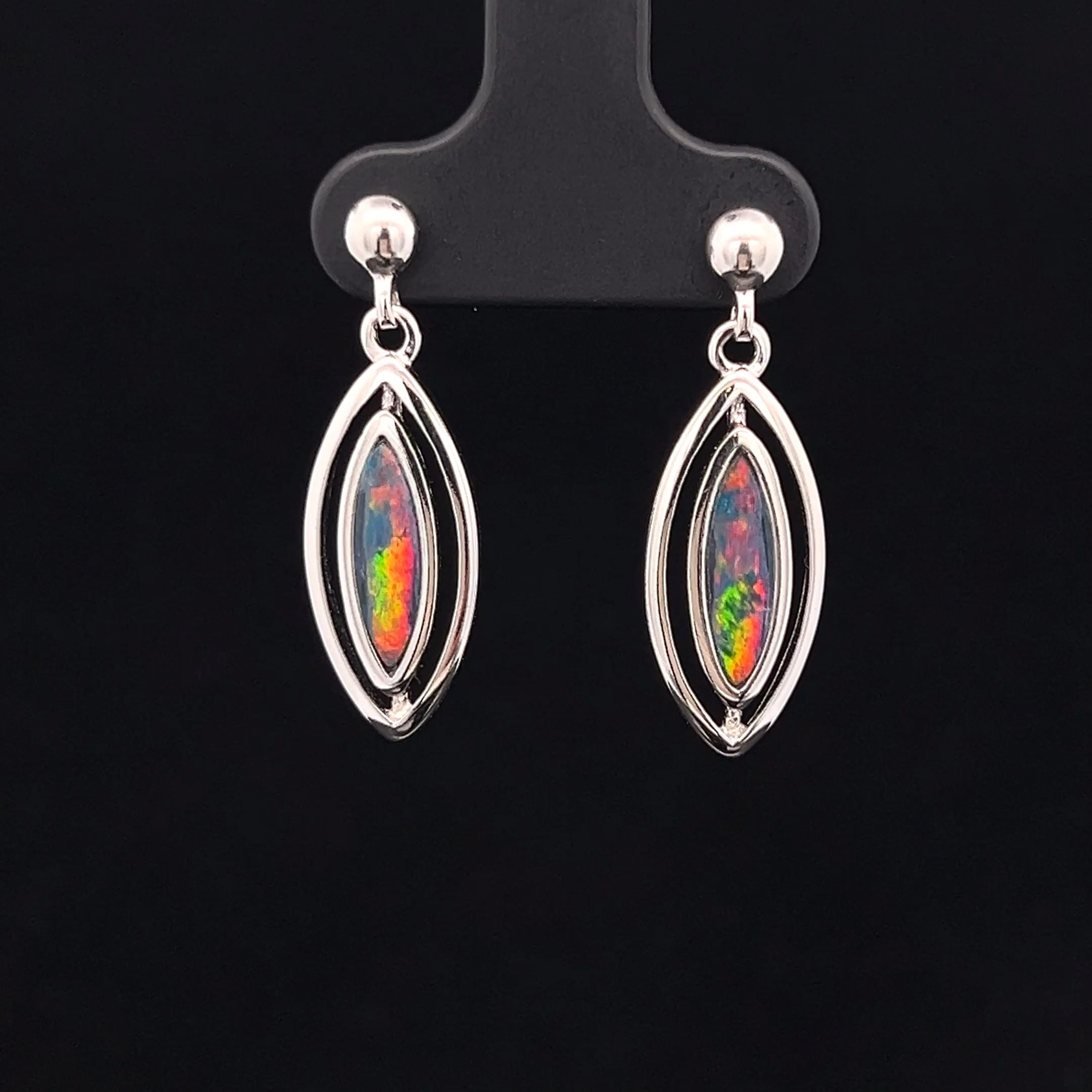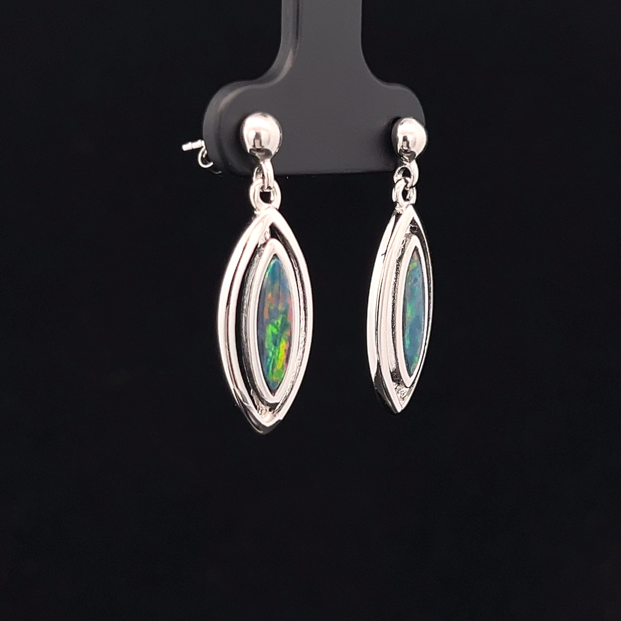 Australian Gem Quality Doublet Opals set in Sterling Silver Drop Earrings
