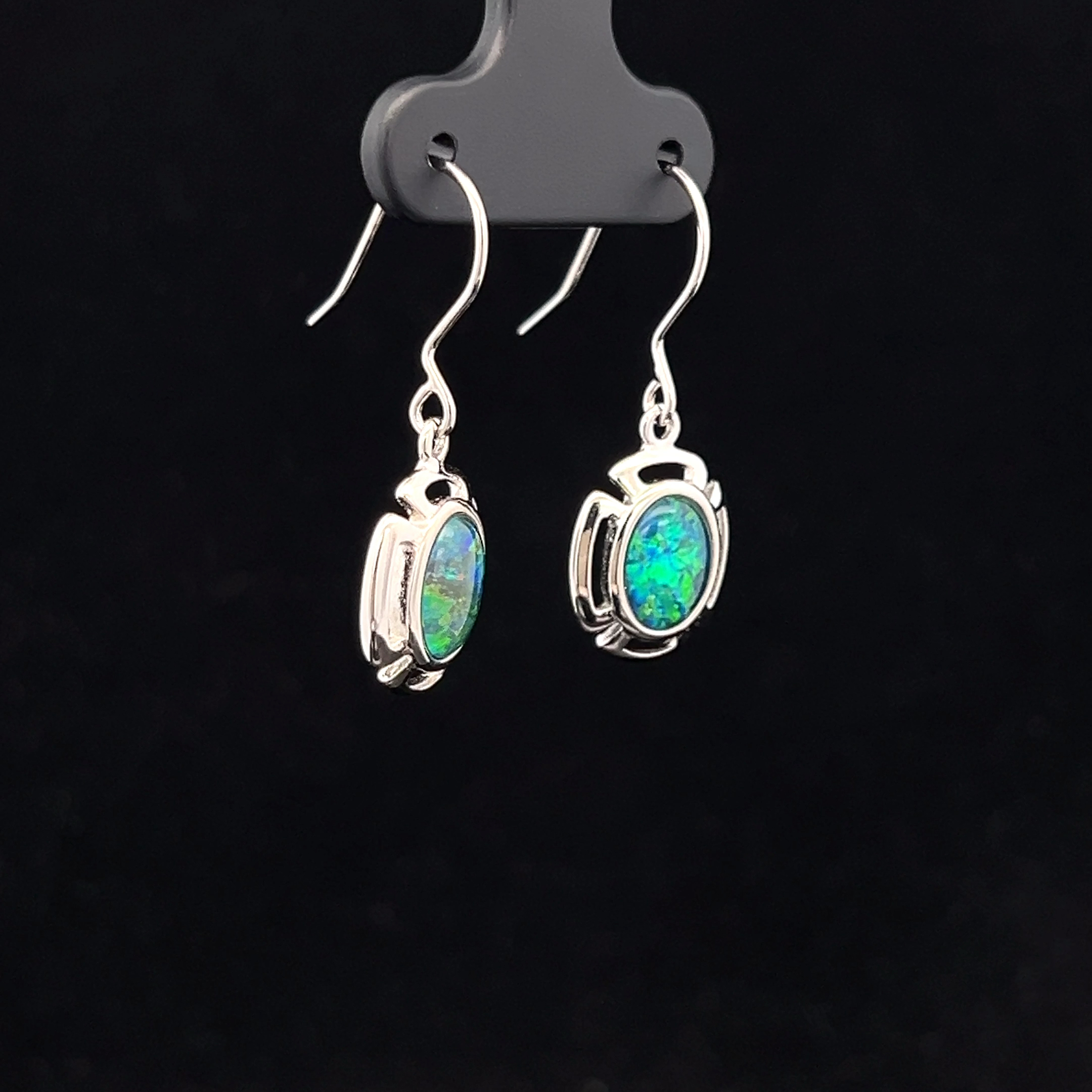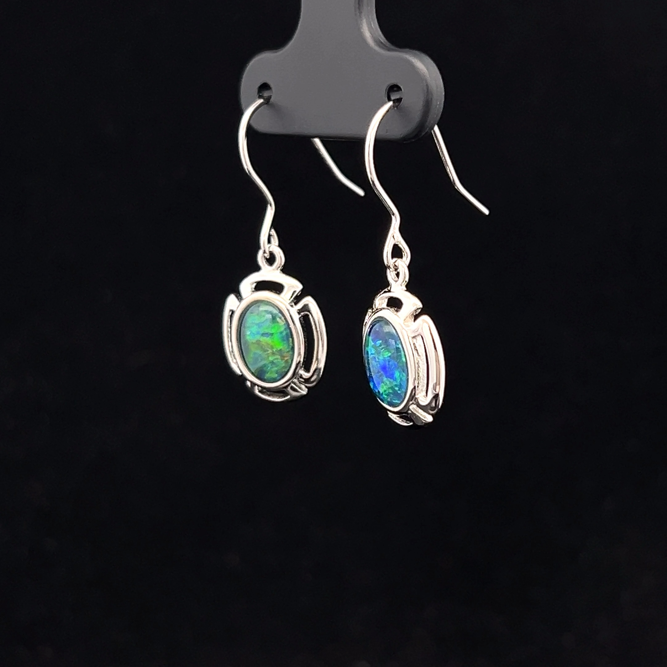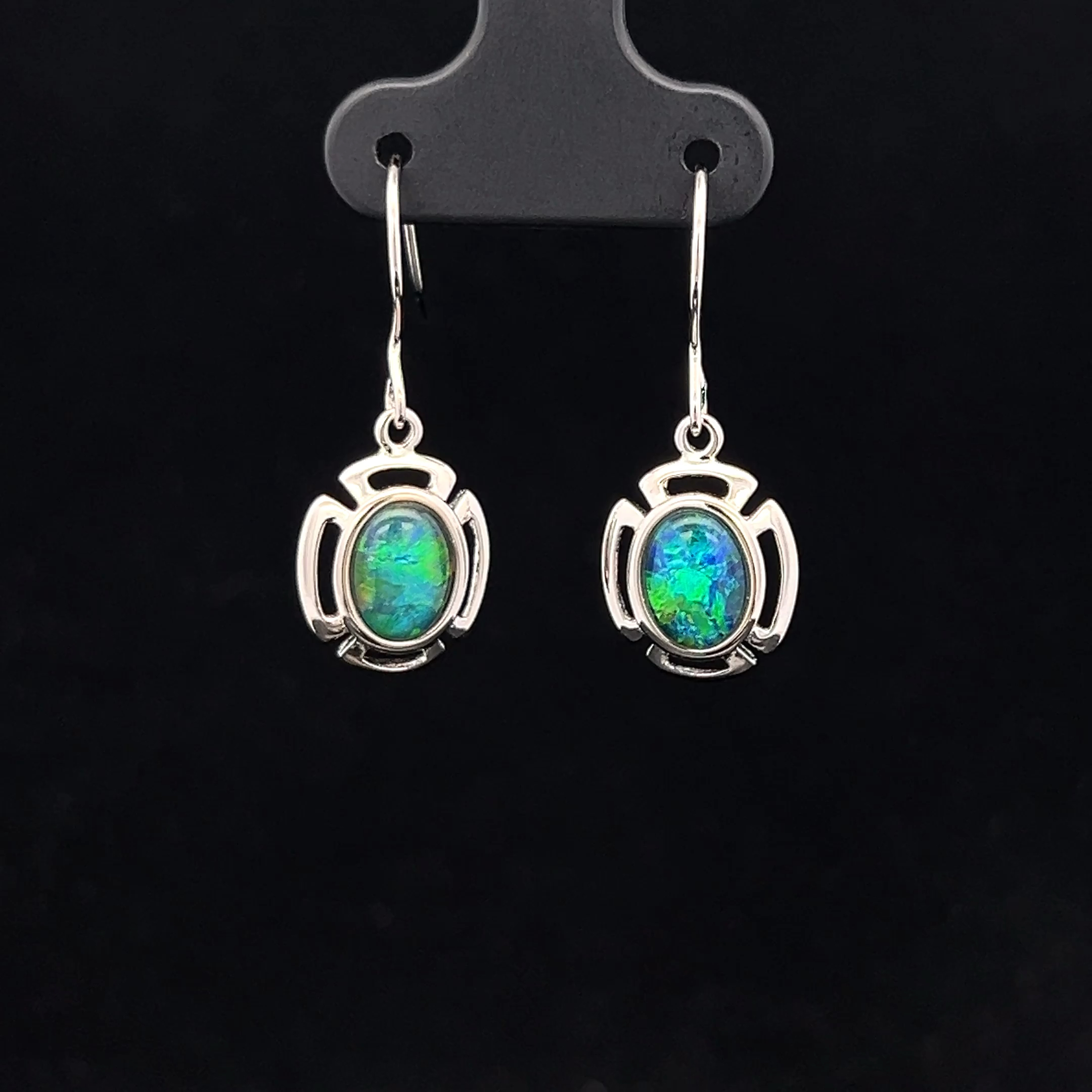 Australian Gem Quality Triplet Opal set in Sterling Silver Hook Earrings