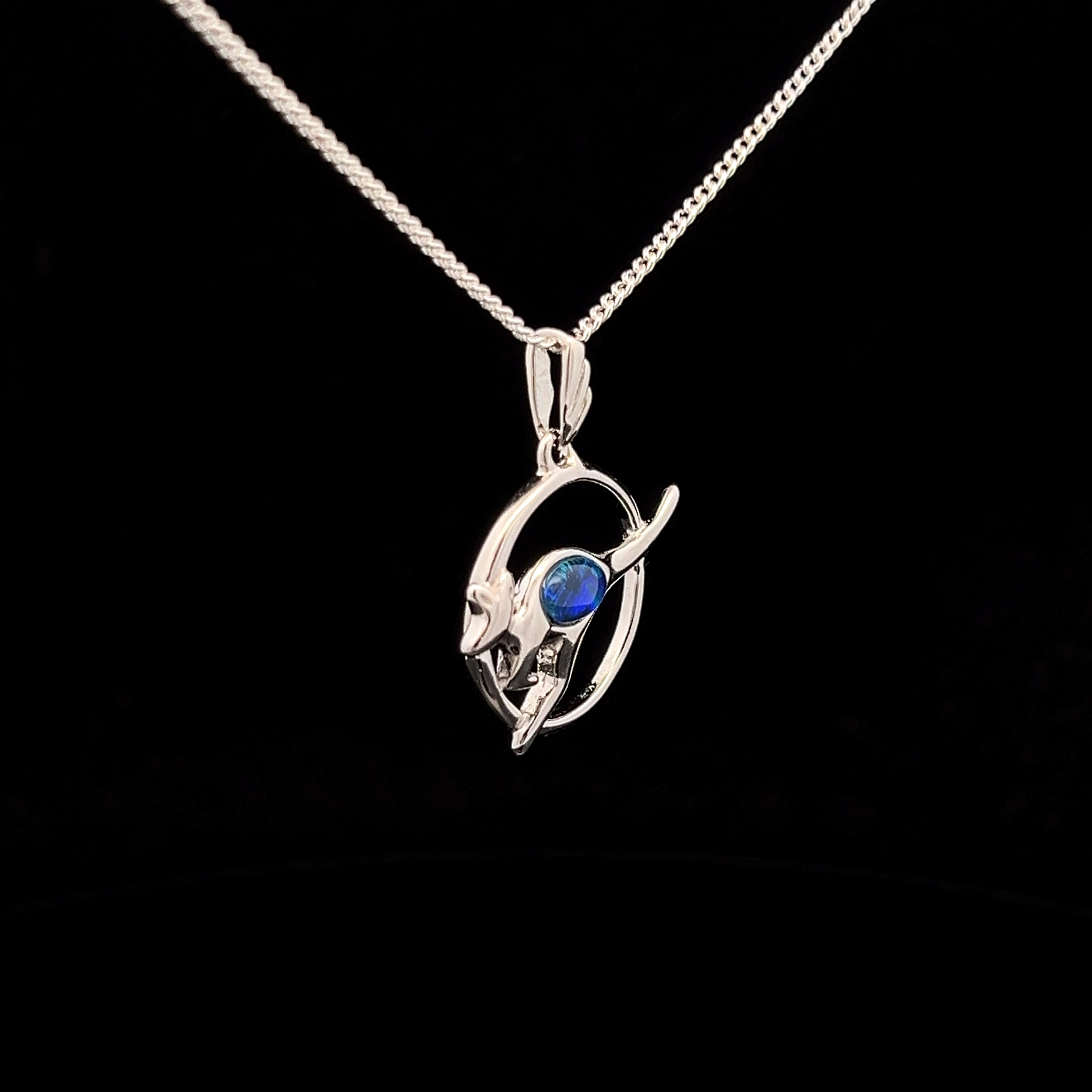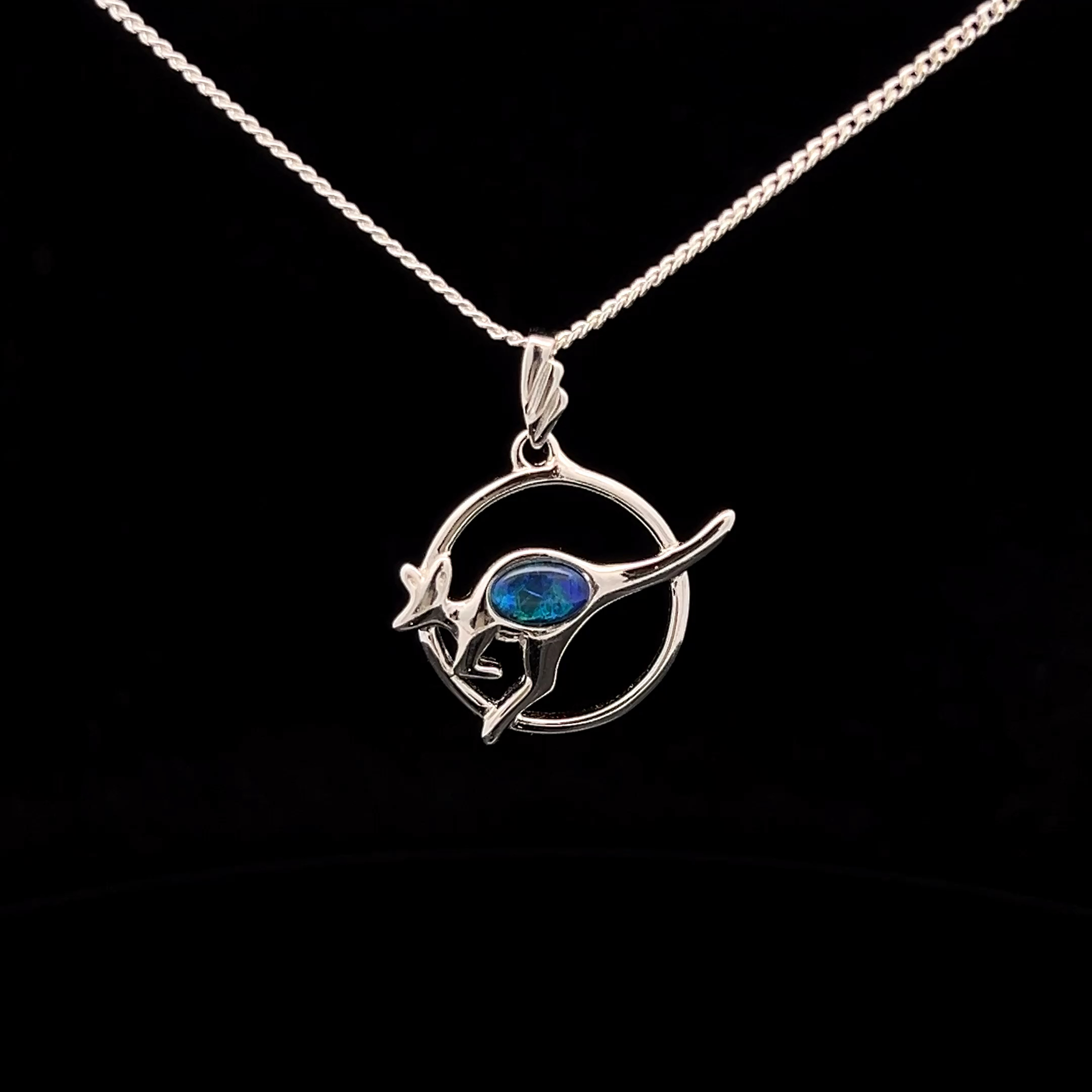 Australian Triplet Opal Pendant Set in a Sterling Silver Kangaroo Design