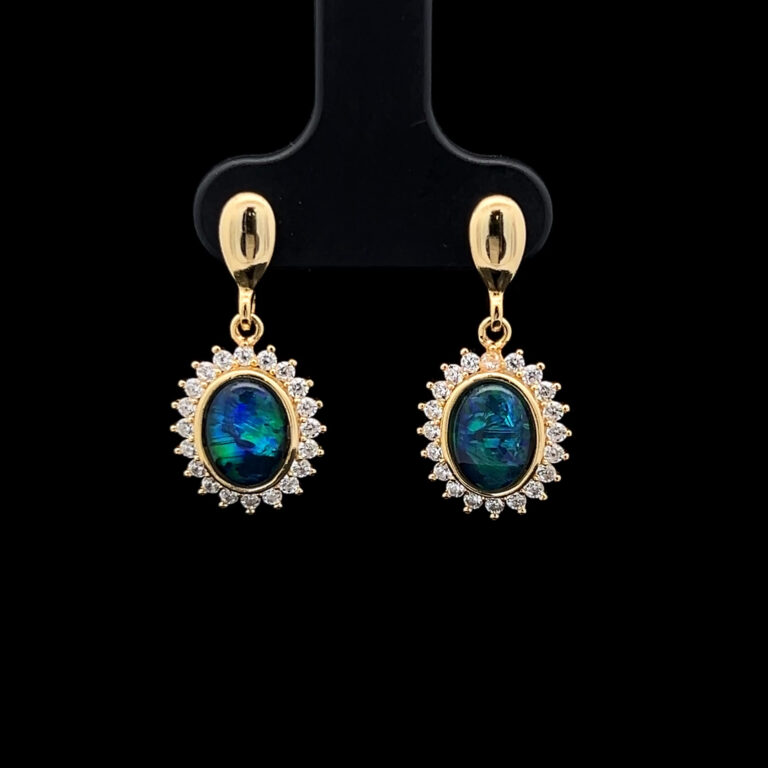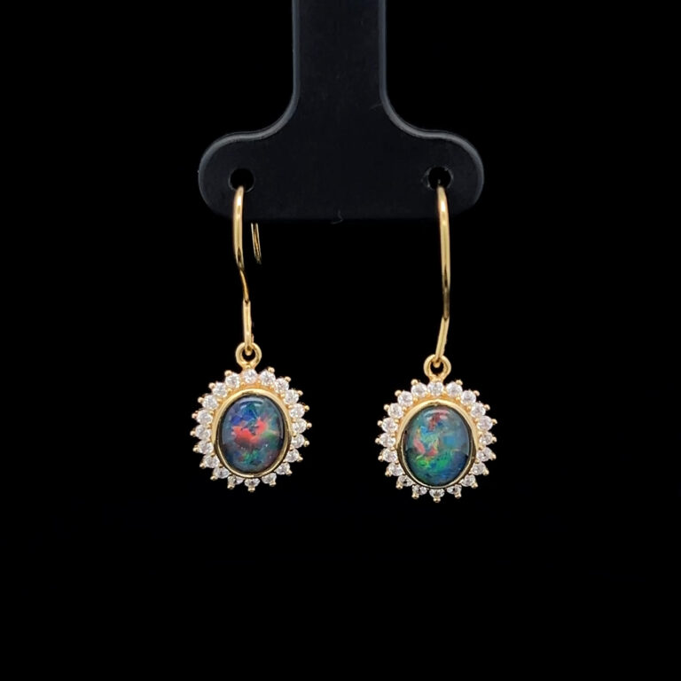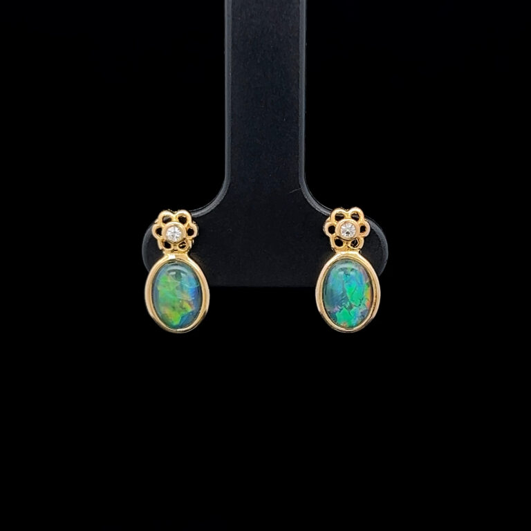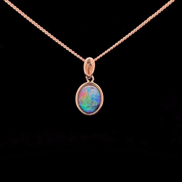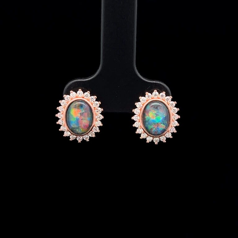Triplet opals are fine slices of opal backed with a base, with an additional quartz cap on top of the slice, to emphasise the gem’s natural beauty. When creating our doublets and triplets, we only use gem-quality opals. Doublets and triplets are water-sensitive and should not be immersed.